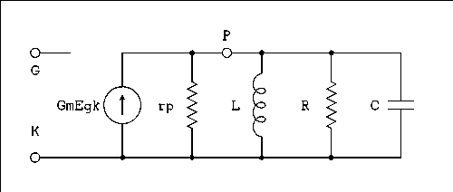 When a tuned circuit is inserted into the plate circuit of a tube we can calculate the gain using the small signal model for a pentode tube which is shown below.