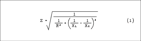 Z = sqrt(1/(1/R2 + (1/XL - 1/XC)2)) Where Z is the impedance of the circuit, R is the effective parallel resistance of the circuit, XL is the inductive reactance, and XC is the capacitive reactance, all values are in ohms.