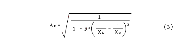To calculate image rejection we need to know the formula for the ratio of impedance at any frequency to the impedance at resonance of a parallel tuned circuit. Since the formula for gain of an amplifier with a tuned circuit in its plate is linear this ratio will give the gain at any frequency as compared to the maximum gain of the amplifier.We begin with the impedance equation for a parallel RLC circuit.