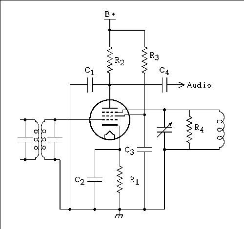 I am in uncharted territory here so there are no component values. The resistor across the tuned circuit in grid 3 is to adjust the bandwidth of the detector. The lower the resistor the wider the band. It may not be necessary to use an external resistor, the losses in the coil may be sufficient to set the bandwidth to the proper value.