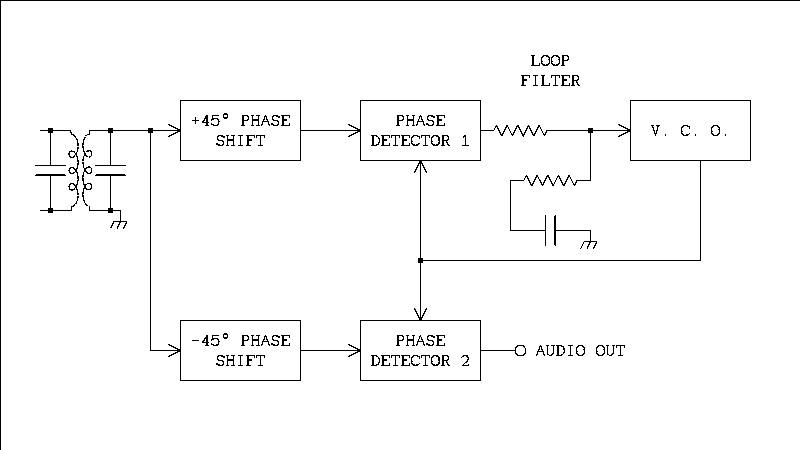When radio signals are bent back to earth by the ionosphere, sometimes the signal can arrive at the receiver by two different paths simultaneously. This can result in cancelation, reinforcement, or something in between. The something in between is what usually happens. The partial cancelation effect is frequency sensitive and because the ionosphere is often in motion the frequency of partial cancelation moves around. When the partial cancelation moves across the carrier frequency the sidebands are too strong for the carrier and an effect somewhat like over modulation occurs. To the ear this is perceived as sounding like single sideband. As the frequency of minimum reception sweeps across the double sideband AM signal the audio is little effected because the other sideband is there to reduce the effect. But when it sweeps across the carrier the effect is decidedly unpleasant. If there were an oscillator running at the detector that was locked in phase with the incoming carrier this effect would be greatly reduced or even, to the ear, totally eliminated. I have played with hanging such a detector, in integrated circuit form, on the end of a receiver IF and the effect is quite striking. Not only on short wave broadcast but when listening to distant stations on the standard AM broadcast band.Remember that the phase detector locks the VCO at 90 degrees from the carrier but we need not be phased by this, because there is a work around.