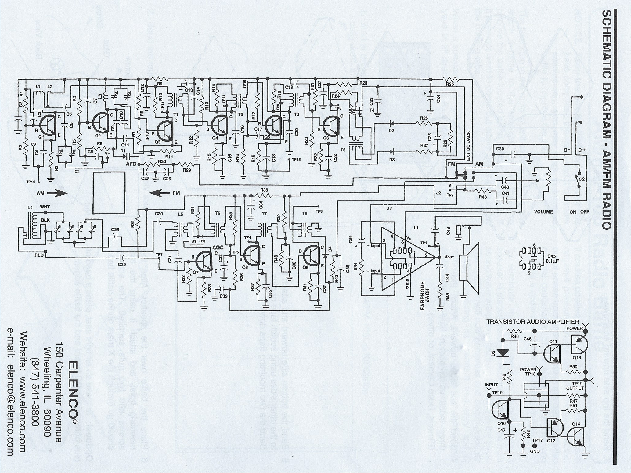 Figure 1 Schematic Diagram of ELENCO AM / FM Radio Kit.