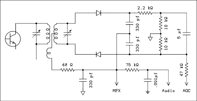 The circuit for this detector is somewhat simpler because a special discriminator transformer is not required.