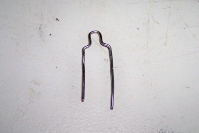 Remove the insulation from about 2 inches of hookup wire and form it into the shape shown in the second picture. The ends of the wire should have the proper spacing to fit into holes E11 and F11 without having to be reformed.