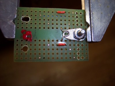 Push the board all the way down onto the nuts and start three 4-40 x 1/4 nuts onto the three screws. Tighten them down but don't get too enthusiastic with the one on the solder lug. Here is what it should look like now.