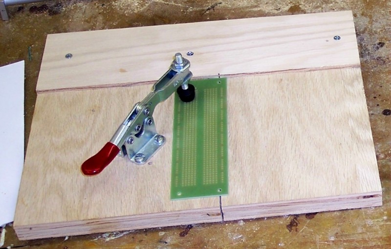 Begin by cutting the PC board. You can only do this safely with a band saw. If you don't have one or a friend who has one I'll make you a deal. Order the specified PC board from Jameco, stick it in a business sized envelope with some paper for protection and send it to me first class. I will cut it and send it back to you. Be sure to tell me which IF transformer you want. I have made the same offer on the other page. If you fail to tell me it will cause an unnecessary delay. I am requiring you to buy the board and send it to me to discourage frivolous requests. I suggest you put tape over the edges and especially the corners to prevent them from tearing through the envelope. Taping the board to a sheet of heavy paper is also a good idea.