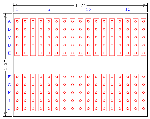 Change to a 1/16 bit. With the boards away from the boxes enlarge the following holes in the board. A15, B15, C15, D15, G15, H15, I15, and J15. Do this to both boards.Change to a 1/8 inch bit and enlarge the two holes at C3 and H3. Also enlarge the hole that is between holes E15 and F15. Do this for both boards.