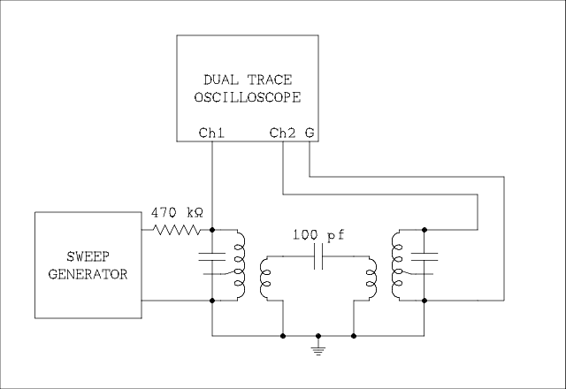 When two resonant circuits that are tuned to the same frequency are coupled together the band pass they produce depends on the amount of coupling. If they are over coupled the response is a double humped curve. If under coupled the insertion loss goes up but the bandwidth gets narrower. Sometimes loss is tolerated to obtain narrow bandwidth. But when the coupling is just right…ah, that is just right. The amount of insertion loss is minimum and the bandwidth has a nice single humped response. It doesn't matter if the method of coupling is magnetic as is used in tube type I F transformers or capacitive as in the transformers shown on this page. For more details on why over coupling produces the double hump follow this link. At the end of that page you will be given a link that will bring you right back here.Making a Test Circuit.