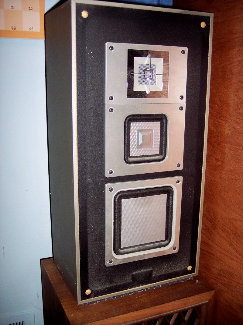 SPL stands for Sound Power Laboratories. I have saved the best for last. These are my primary listening speakers which are part of the best system in the house. I bought them in 1972, I think, After some careful listening. I think they were about $200 or $250 each. That was a lot of money in those days when you could buy a house for $18,000 and a new car for $3600. The woofer is an acoustic suspension type. About 10 years ago the rim around the woofer disintegrated as old plastic is want to do and I had to replace the woofers with some from Radio Shack. The bass was almost as good but there was a small difference.