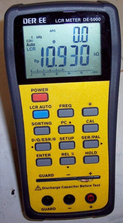 It seems I should give some verification of the test equipment I am using to make measurements presented in these pages. I don't have anything that could be called an electrical standards lab. The fancy term for that is a metrology laboratory. I don't have one of those either.One very good instrument I have is a Hewlett Packard 4261A LCR Meter I bought through eBay. But it has been replaced by this little wonder from Japan. It gives one more digit than the 4261A and will perform a wider variety of tests. The 4261A was used in the measurements on the 8 ohm dummy load below. I'm not going to repeat the work using the new LCR meter.