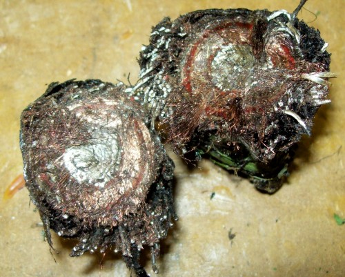 After the tar covered old transformer cooled I picked it up and scraped off all the grass I could.