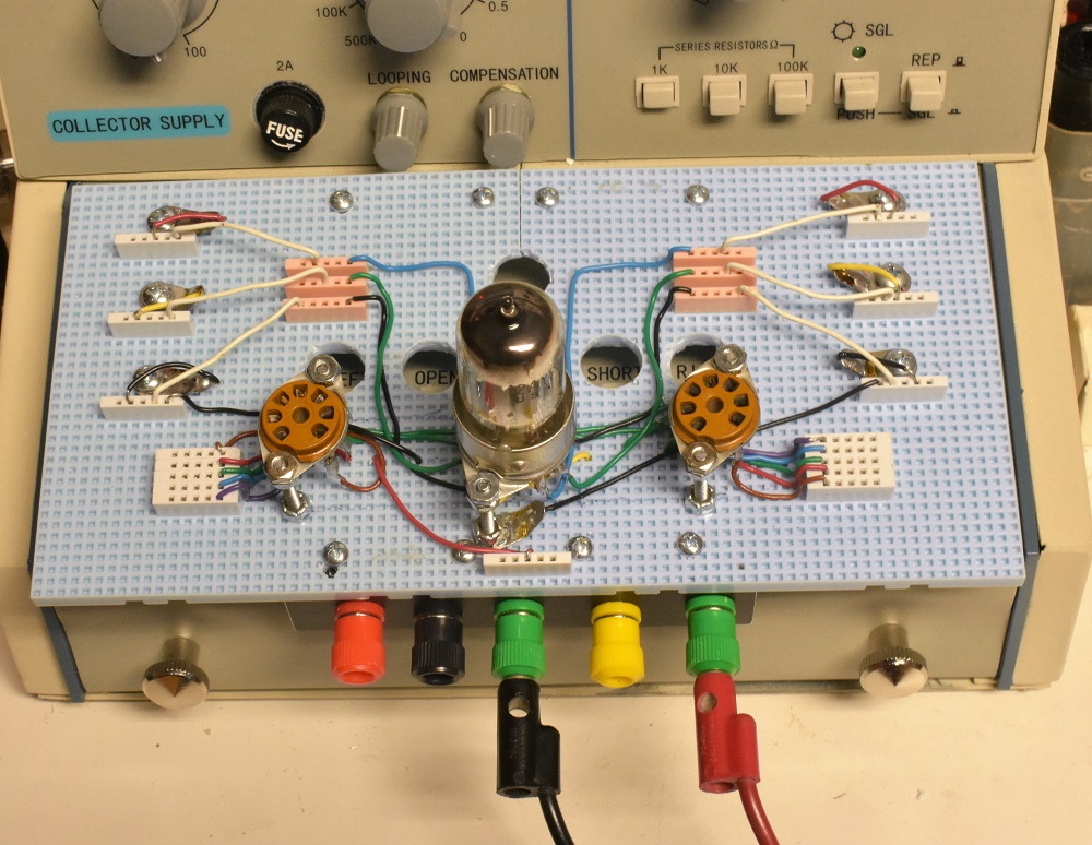 Note: While I negotiated with Circuit Specialists over returning the curve tracer I continued to work on the tube test fixture. That part of the tracer was functioning properly so I was able to continue working.Sometimes I wonder about the utility of a transistor curve tracer. There is so much variation from one to another of the same type number as to make a procedure such as load line analysis totally useless. On the other hand the few of us who are old enough to have been taught load line analysis in trade school or university know how powerful a tool it is in design of vacuum tube amplifiers. To that end I have built a tube test fixture. This is just the first of what is at present an unknown number.