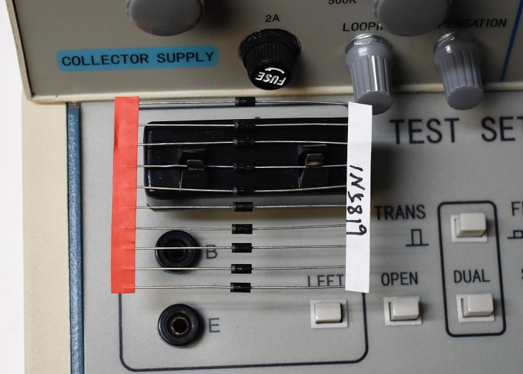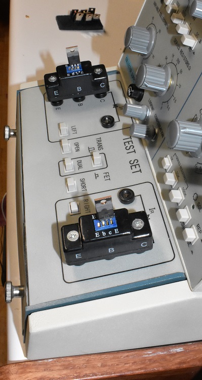 A total of 5 test fixtures were supplied with this instrument. Two will accommodate TO92, TO5 or TO220 transistors.