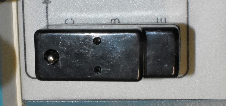 Below you see the fixture mounted on the TEST SET. The 6 holes give access to the 6 pushbutton controls. There are a little small for a finger but the end of a nut driver is the perfect tool to push a button.