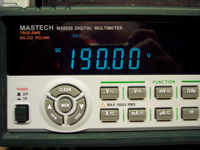 5 DMMs indicating a DC voltage of 190.00 volts.