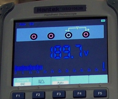 In this picture the display on the Hantek® DSO/DMM is hard to read so I cropped off everything else and enhanced the contrast on the screen to make it easier to read.
