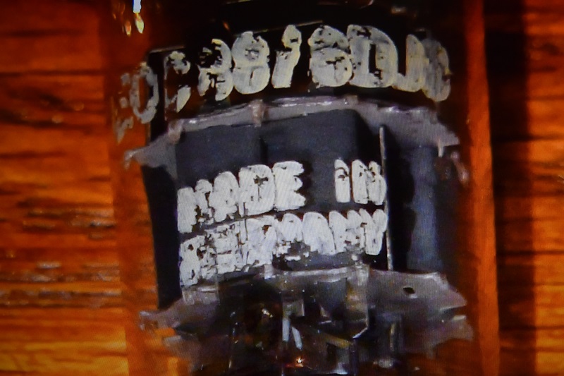 All of the 6DJ8s I have, came in boxes that did not have the tube number printed or written on the outside. The number is in my hand printing. Looking at the tubes, tube 1 is a Tung Sol. Tubes 2, 3, and 4 are labeled as shown in the picture. If you can figure it out pleas share the knowledge with me and I will add it to this page.J. E. Knox was first to interpret the sloppy printing for me. It reads, "ECC88/6DJ8 MADE IN W.GERMANY". Technically speaking it was made in a country that doesn't exist anymore.