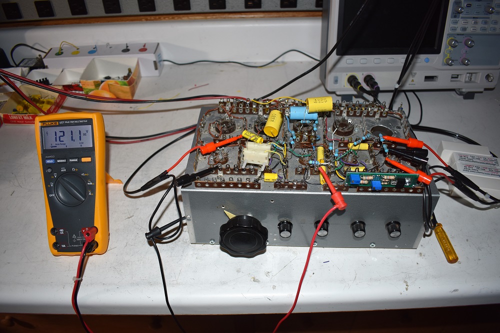 The math also told me that when the bootstrapping in the plate is working and the cathode bypass capacitor is removed the gain is reduced by 0.8 dB. Removing the capacitor from the breadboard reduced the measured gain by 1 dB. That's really pretty good considering all of the errors that can creep into tube circuits.