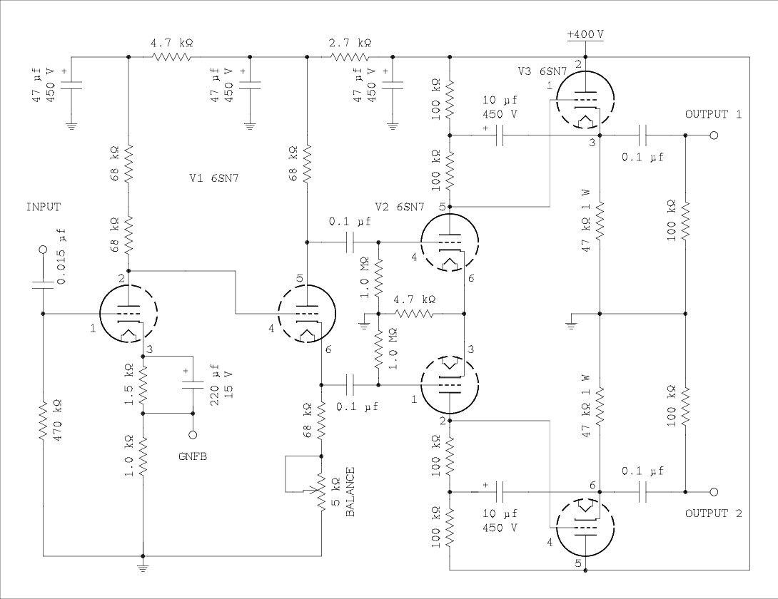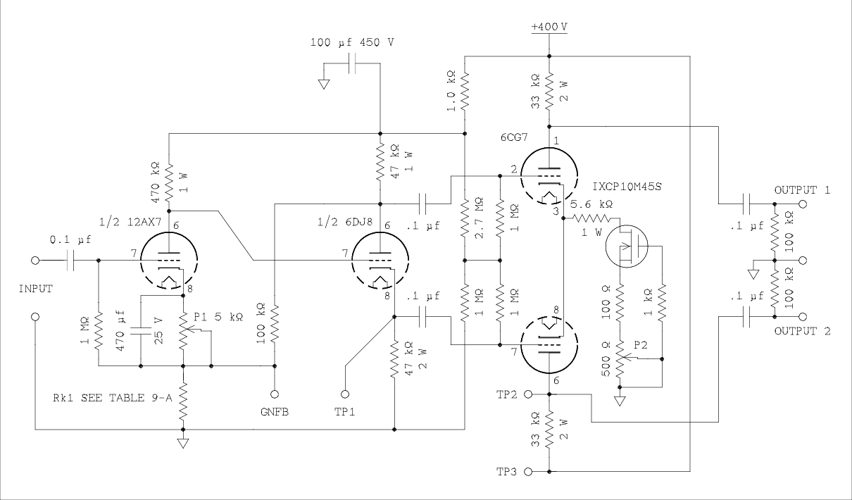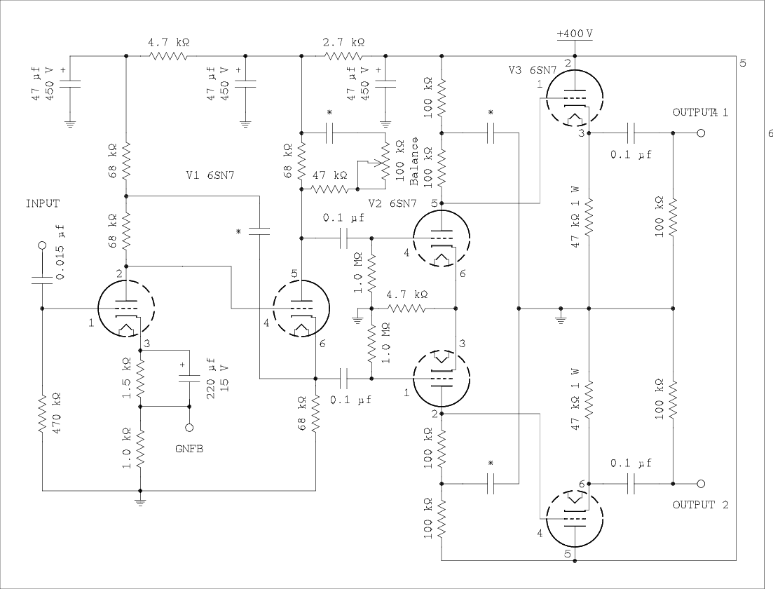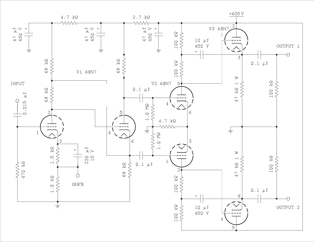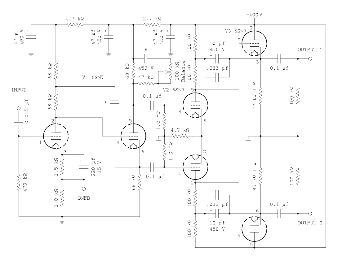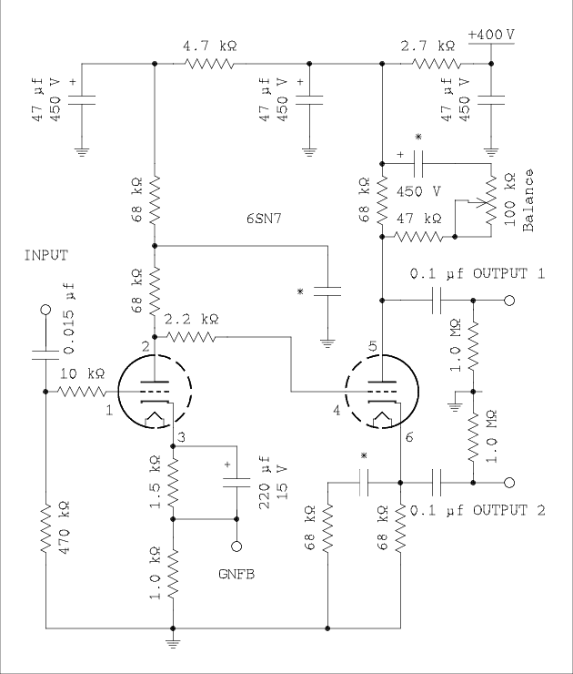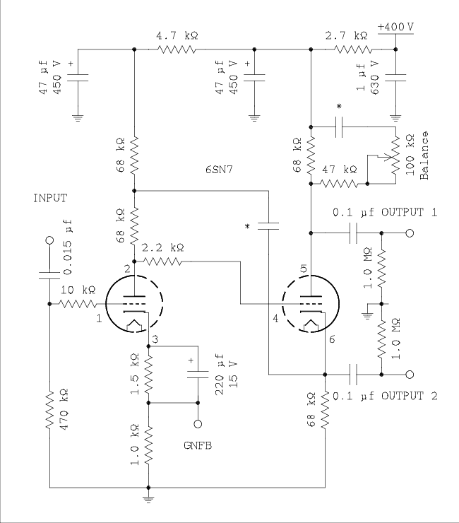 The amount of gain the inverter/driver* is required to supply depends on how much global negative feedback (GNFB) is applied to the amplifier. Specifically, 20 dB, 10 dB, or 0 dB. The inverter/driver will be evaluated at gain values that are suitable for combinations of the amount of GNFB and drive requirements of the power tubes.
