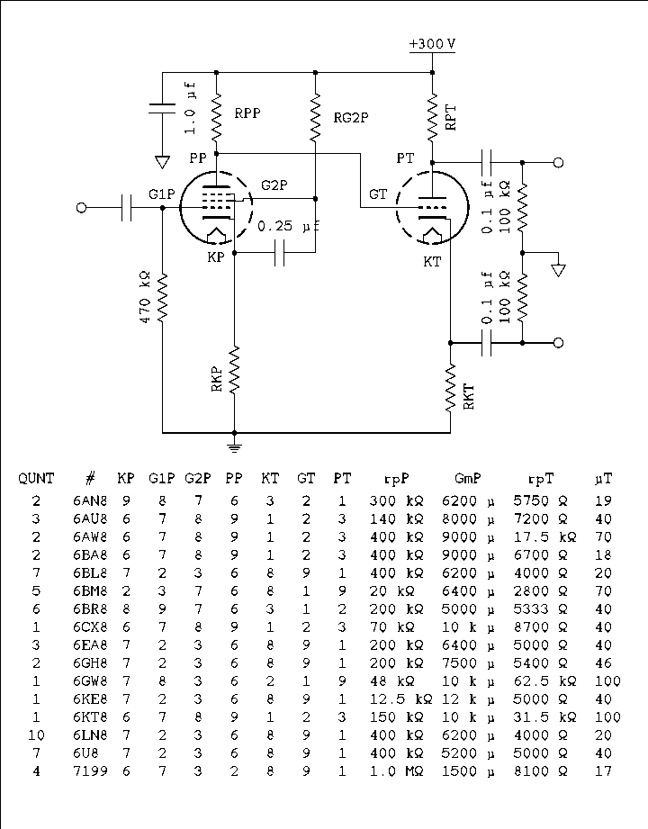 Figure 2 General Circuit with Table Listing Tube Parameters.