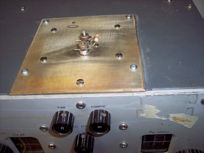 The resistor under test is then connected to the terminals and the dials adjusted for minimum meter deflection. The dials are read and the data recorded in the spread sheet. Once the frequency was set up all resistors were measured before changing frequency.