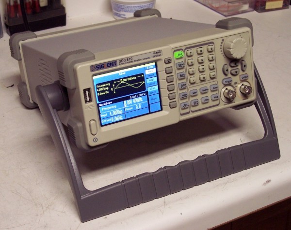 This is not your father's function generator. Using digital synthesis techniques it will generate any waveform you can imagine and probably some you can't. It will generate periodic waves at frequencies from 1 µHz to 10 MHz. No, that was not a typo. The lowest frequency has a period of 1Ms. That's a capitol M for Mega. One million seconds is 11 days, 13 hours, 46 minutes, and 40.000 seconds. When the frequency is set to 1 kHz, the amplitude to 1 volt RMS, and the output is terminated in 50 ohms, the distortion on a sine wave is 0.028%. If you have a harmonic distortion analyzer I'm sure you can think of one good use for this generator. There are many more.
