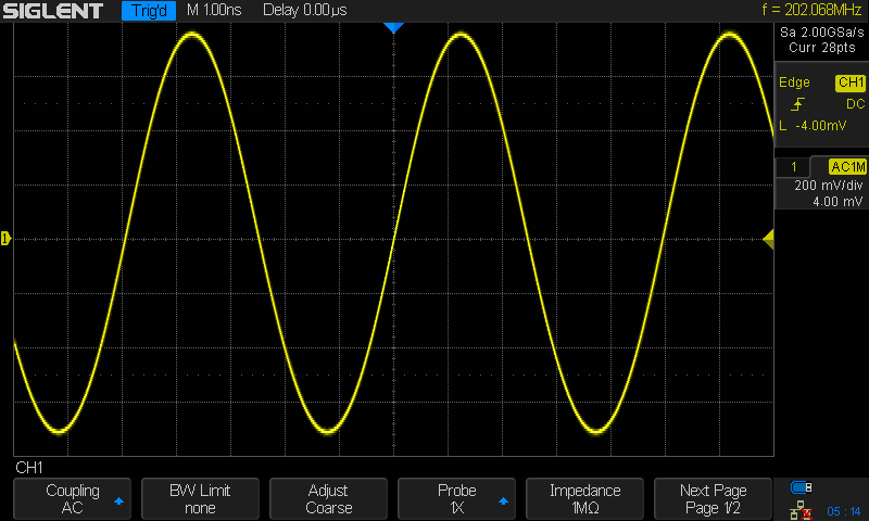 At 200 MHz the trace was as stable as it is at 1 kHz.