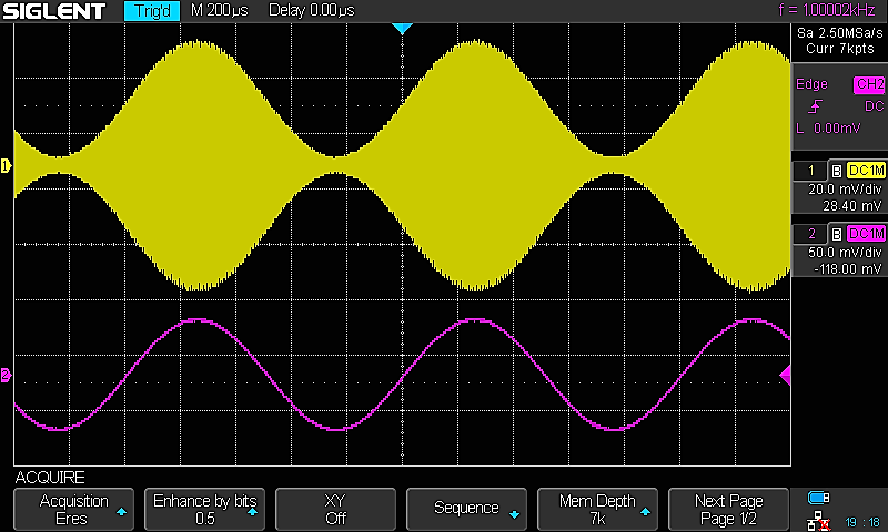 Screen Capture of Amplitude Modulated carrier and modulating signal.