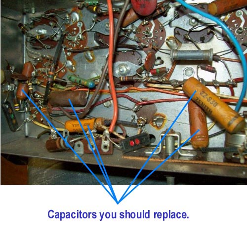 There are three kinds of vintage components which are likely to be bad in vintage equipment. These are electrolytic capacitors, paper capacitors, and resistors. So, let's handle these likely problem spots first.