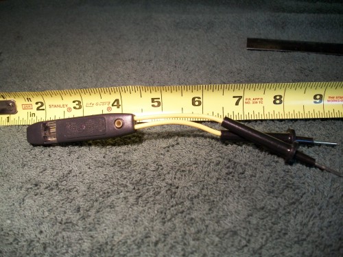 Similar devices are available from Glow Circuit Tester. or Circuit Tester.Check the test lamp, to make sure it lights up, by attaching one terminal of the power supply to a winding, the other terminal to the test lamp, and probing another end of the winding with the free probe of the test lamp. The test lamp should light indicating that there is a good connection. We don't want to think the insulation is good, when in reality it was not good, but the lamp didn't light because there was a bad connection to the winding. This check to ensure that the lamp lights up must be repeated for each winding connection.