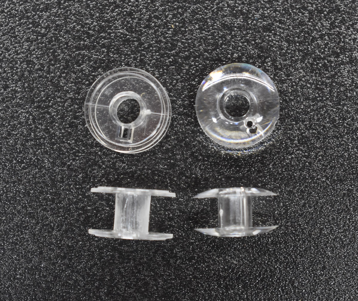 - Every bobbin I have seen so far has sharp protrusions left by the place where the liquid plastic was injected into the mold. I'm not sure how this affects thread but I don't think it's conducive to winding good coils. Use a small file to remove the point. Don't worry about the mold marks caused by the seam in the mold. They don't appear to cause trouble.