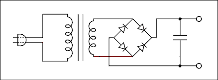 Failures can cascade. Consider the case of the simple power supply of figure 3.4. This is a typical circuit of those power supplies which are in plastic cases with AC plug prongs on them. These are often called "wall mounted" power supplies or wall warts. You will note that there are no fuses in the circuit.