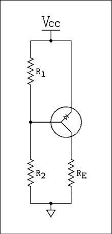 Ic = (VBB - VBE)/RE = (1.78 v - 0.6 v)/1.2 k ohms = 0.983 mA. We may want to use Equation 4.23. To do so we must make a guess as to the beta of the transistor. It will do little good to look up the transistor in a transistor manual. Values of beta even for transistors of the same type number can range from 25 to 250 and are listed as such in the manual.Let us make a slightly pessimistic guess that the transistor's beta is 50.