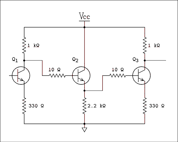 Let us now return to a circuit which we looked at earlier, figure 6.13. In section 6.2 we discussed the effects of a short in Q2.
