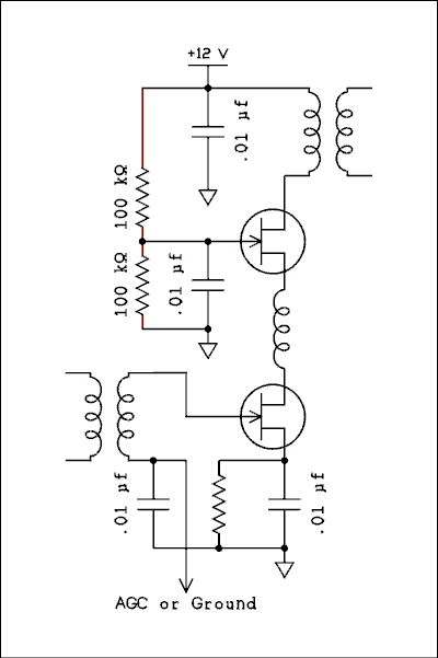A modified version of this circuit was used in the FM tuner section of the Heathkit AR-15. Instead of a series coil from the drain of the bottom fet to the source of the top fet the signal was coupled by a combination of magnetic and capacitive coupling. In addition a third winding on this transformer provided neutralization to the circuit. Clearly it took some engineering to make this circuit work well enough for use in a production product. The tuner front end came preassembled and factory aligned in the kit.