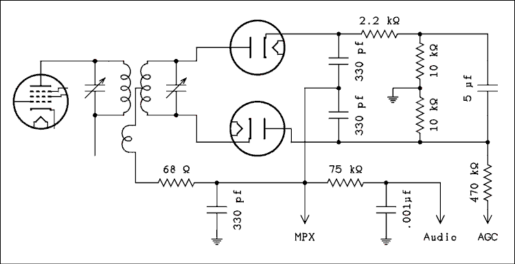 The circuit for this detector is somewhat simpler because a special discriminator transformer is not required.